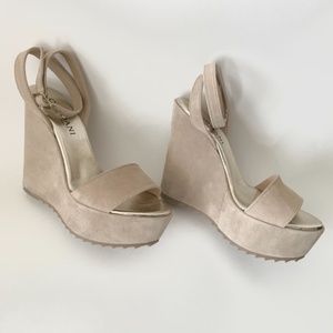 Cordani Made in ITALY Ophelia Nude Beige Suede Wedge Platform Sandals 39