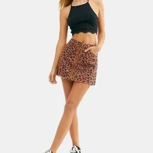 🥳HP🥳 Free People Zip It Up Leopard Print Denim Mini Skirt