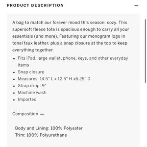 A super soft carryall for every essential, featuring a snap closure ❤️ Very nice cozy plush tote bag