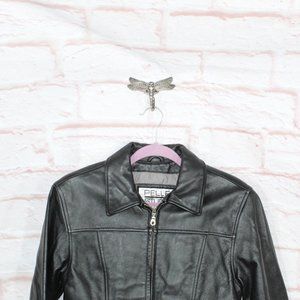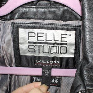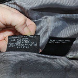 Wilsons Black Nylon Lined Zip Up Insulated Genuine Leather Jacket Size M