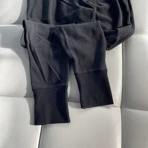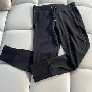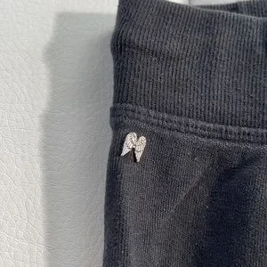 Black extra soft Victoria’s Secret sweats. Size Small. Has cute silver metal wing symbol below waistband, and metal tips on string. Good condition no flaws.