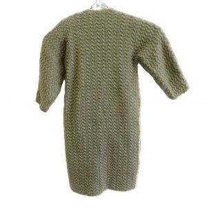 Vintage Boucle Wool Duster Jacket Pockets Open Front Lined Embellished Beige 6