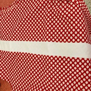 I love this top but despite alterations as shown by white strip on back, it’s too small for me. Contemporary medium. 18” armpit to armpit. 20” down. I’m love it and hope you will.