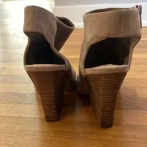 Vince Camuto | Women’s tan suede side zip wedges. Good used condition! See all pictures for scuffs, marks, condition, etc of shoes.