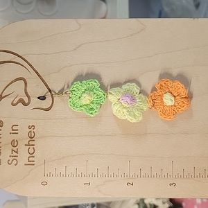 Three cotton crocheted flowers.