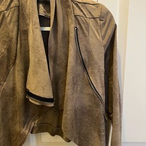 Gorgeous jacket! Long sleeved Light brown faux suede jacket with an asymmetrical zip style. Light brown. Excellent condition; barely worn.