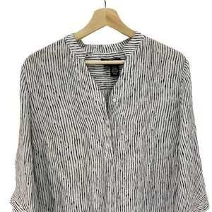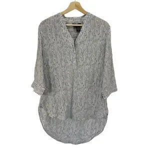 3/$25 Papillon White and Black Striped 3/4 Length Sleeve Tunic Medium