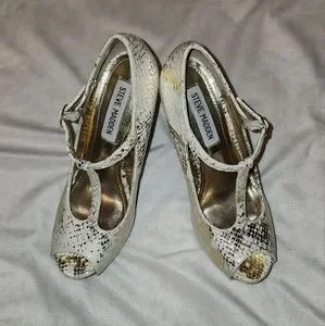 Women's high heels shoes/ STEVE MADDEN/ Color White & Gold / size 6. used but in good condition.