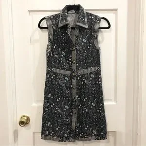 Collared button-down dress in a floral and striped pattern. Missing size tag but fits like a small.