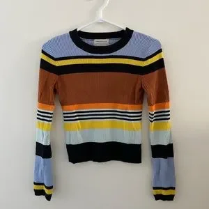 Slim fit and slight crop. Ribbed texture. This is a very fun and comfortable sweater
