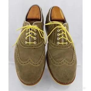 Johnston & Murphy Men's Taupe Suede Sheepskin Brogue Wingtip Oxfords Size 9M