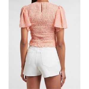 EXPRESS Printed Smocked Bodice Flutter Sleeve Top