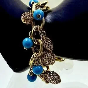 Available to you is a 14K yellow gold and turquoise charm style bracelet. It is in great condition and is fun to wear. Approximate dimensions: Length - 8.0" (end to end). This bracelet weighs 20.6 grams. Please see pictures for further details. Also, check out my closet for more unique items. Thanks for stopping by!!