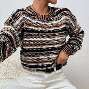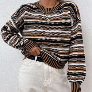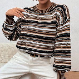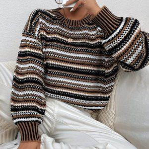 casual striped lantern sleeve sweater top