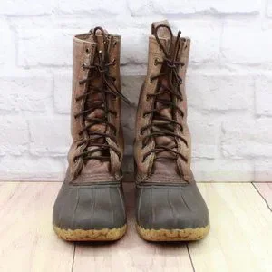 LL Bean Brown Leather Mid Calf Lace Up Unlined Hunting Duck Boots Size 6 M