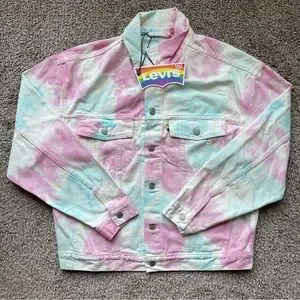 UP FOR SALE IS A NEW LEVIS PRIDE OVERSIZED TRUCKER JEAN DENIM JACKET MENS SIZE MEDIUM TIE DYE METAL BUTTONS BLUE PINK. PRICE IS FIRM. IF OPTING FOR SHIPPING, I WILL SHIP SAME BUSINESS DAY FOR A FAST ARRIVAL TIME. I DO SHIP PRIORITY MAIL AND THE ITEM SHOULD ARRIVE WITHIN 1-3 BUSINESS DAYS. PLEASE REVIEW PHOTOS AND REACH OUT WITH ADDITIONAL QUESTIONS. THANKS FOR LOOKING!