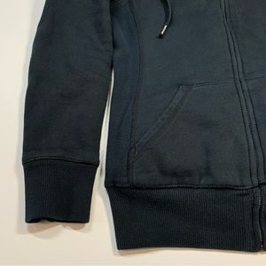 This is one hella warm hoodie! The whole body and hood are lined with the Uber warm and so plush faux fur. Full zipper with two front pockets. And best yet it’s fitted and doesn’t feel bulky!