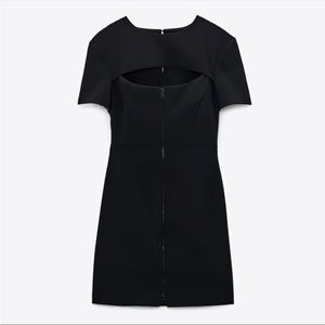 BNWT Zara Cut Out Front Zip Black Mini Dress