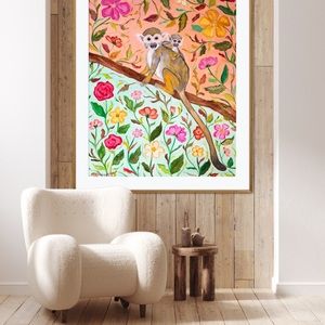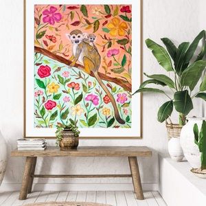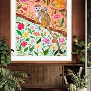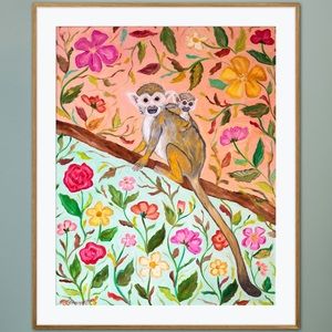 Squirrel Monkeys Art Print Oil Painting tropical floral botanical animal decor
