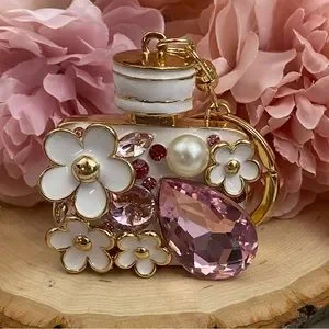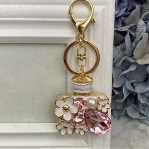 Pink Crystal Flower Perfume Bottle Keychain Charm
