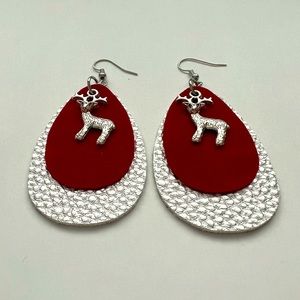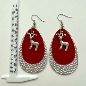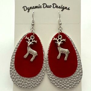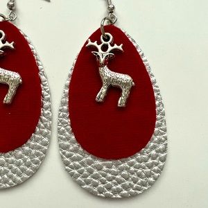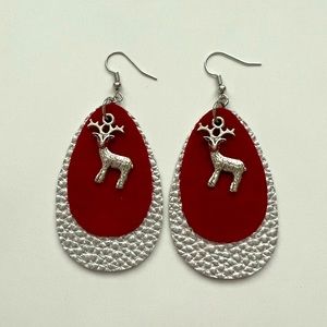 Christmas Reindeer charm faux leather earrings