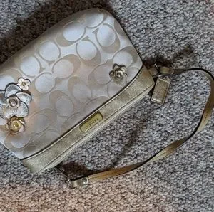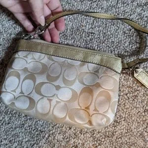 All offers are Negotiable(obo) This is a gorgeous gold/ cream colored Authentic Coach Wristlet. This wristlet has gold n silver leather crafted flowers on the front of bag also. Pictures don't do justice. EUC... NO markings.rips or snags. Zipper works great. Reposhing this item I purchased from @ambergrossman. Loved it, but ready to rotate for something new.