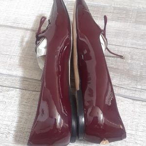 EUC... EXCELLENT CONDITION...SOME MILD CREASING IN FRONTS FROM NORMAL WEAR..FOOTBEDS SPOTLESS...HEELS PERFECT...GORGEOUS PATENT LEATHER..COLOR IS BORDEAUX..(BURGUNDY)..SIZE 37.5...BEAUTIFUL...BEAUTIFUL SHOES!!! PRICE IS FIRM