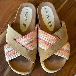 TOMS Woven Paloma Platform Suede Sandals Slides- Size 6 W