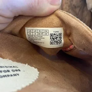 woven upper. TOMS rubber outsole.