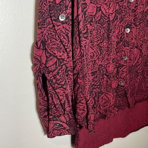 ROCK & REPUBLIC Rose Print Button Front Blouse Womens Medium