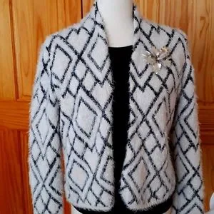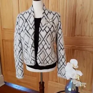 Avec Les Filles Black & White Eyelash Cardigan Size M
