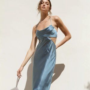 Astr The Label - Collette Satin Cutout Midi Dress - Color: Slate Blue