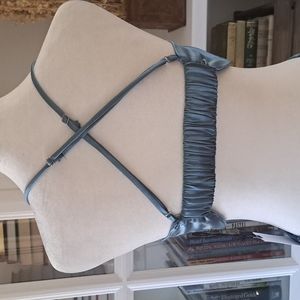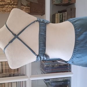 Feast your eyes on the most elegant occasion dress around. It features a ruched neckline and descends to modern side cutout accents that extend to the back. Padded bust. Cross straps are adjustable. Midi-length skirt.