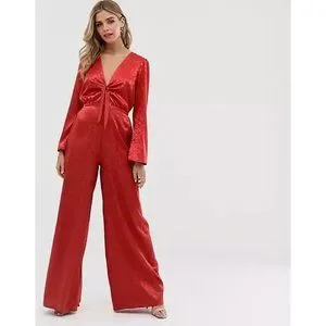 Twisted Wunder London Women's Sz. 8 Tie Front Jumpsuit In Satin Jacquard Red NWT