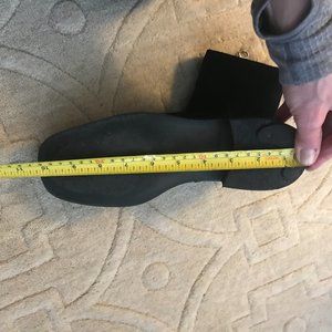Protective heel piece has been professionally installed by shoemaker to lengthen the life of the heel.
