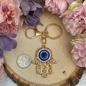 Bohemian Crystal Hamsa Hand with Evil Eye Keychain