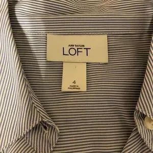 Ann Taylor LOFT Pin-Striped Puff Sleeve Blouse. Size 4