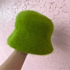 Unbranded Fuzzy Green Bucket Hat Angora Blend Soft