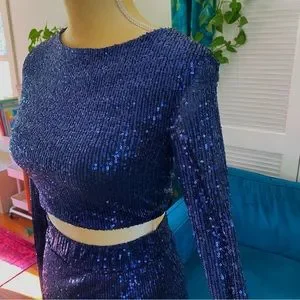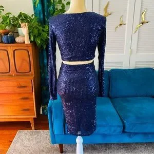 Salty Sophia Sequin 2 Piece Matching Dress Set Midnight Navy Blue NYE New Medium