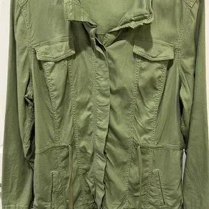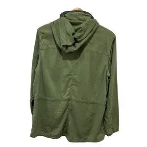 L.L. Bean Women olive green linen blend button down cinch waist jacket sz XL