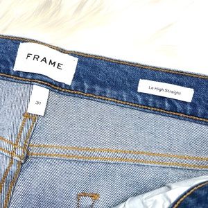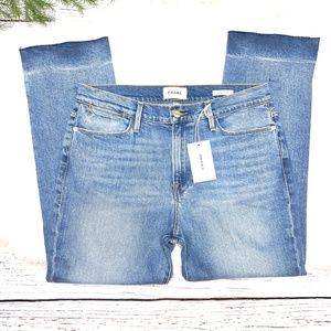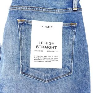 Brand new with tags MSRP $235. Frame Denim. Le High Straight jeans. Raw hems with slits. High-Rise Straight Fit. A high-rise jeans that is fitted through the hips to the mid thighs and relaxes into a slip straight leg that hits above the ankle.