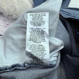 Size 31. Approximate measurements in inches when laid flat: waist 16 across, inseam/length 28, front rise 11, hips 21 across, knees 8 across, bottom hem/leg openings 7.5 across.