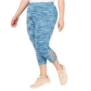Ideology Womens Aqua Leggings Space-Dyed Cropped Coastal Tight Plus Dark Blue 1X