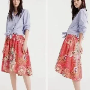 J Crew Womens 2 Cotton Skirt Pink Boho Pattern