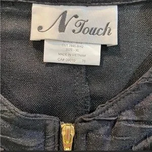 N Touch Ladies Size XL Black Long Sleeve Jacket Zip Front Closure, 2 Front Pockets, 100% Polyester Sleeve Length 23.5", Jacket Length from Back Neck Seam 23", Preowned Excellent Condition. Some pictures look gray but it is black.