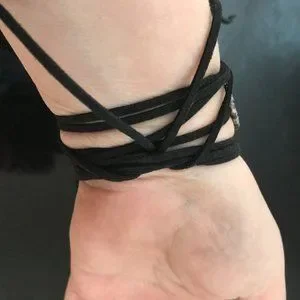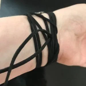 width is 1 inch x 3 genuine suede Tying the leather is easy you can use a combination of a slipknot and a normal knot or just tuck it below the other cords as pictured : This is handmade and imperfectly perfect.
