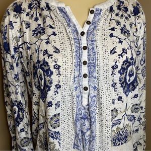 Lucky Brand Size Small Womens 3/4 Length Sleeve Floral Blouse