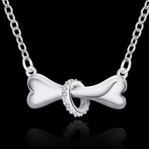 Silver Plated Dog Bone w Collar Choker Necklace