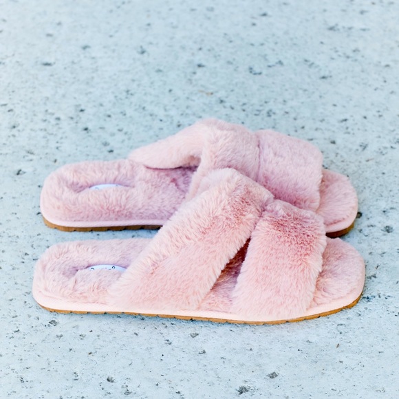Qupid faux furry slides cozy fuzzy slippers PINK NEW
