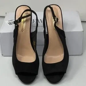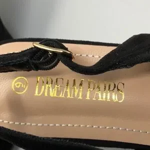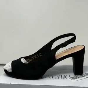 NIB women’s Dream Pairs heeled shoes. The upper is suede, with a rubber bottom. Adjustable back strap. The heel measures three inches.